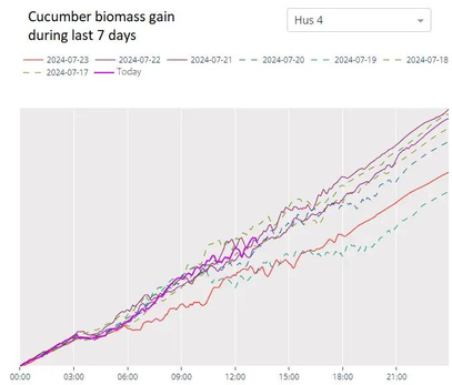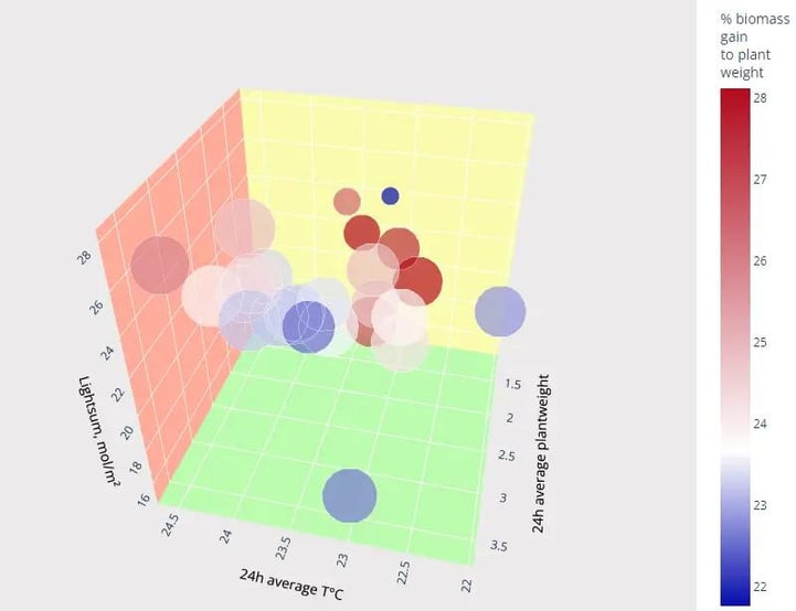We create a growing plan with the necessary DLI and planned daily biomass gain. Based on measurements we can determine the plant growth reserve